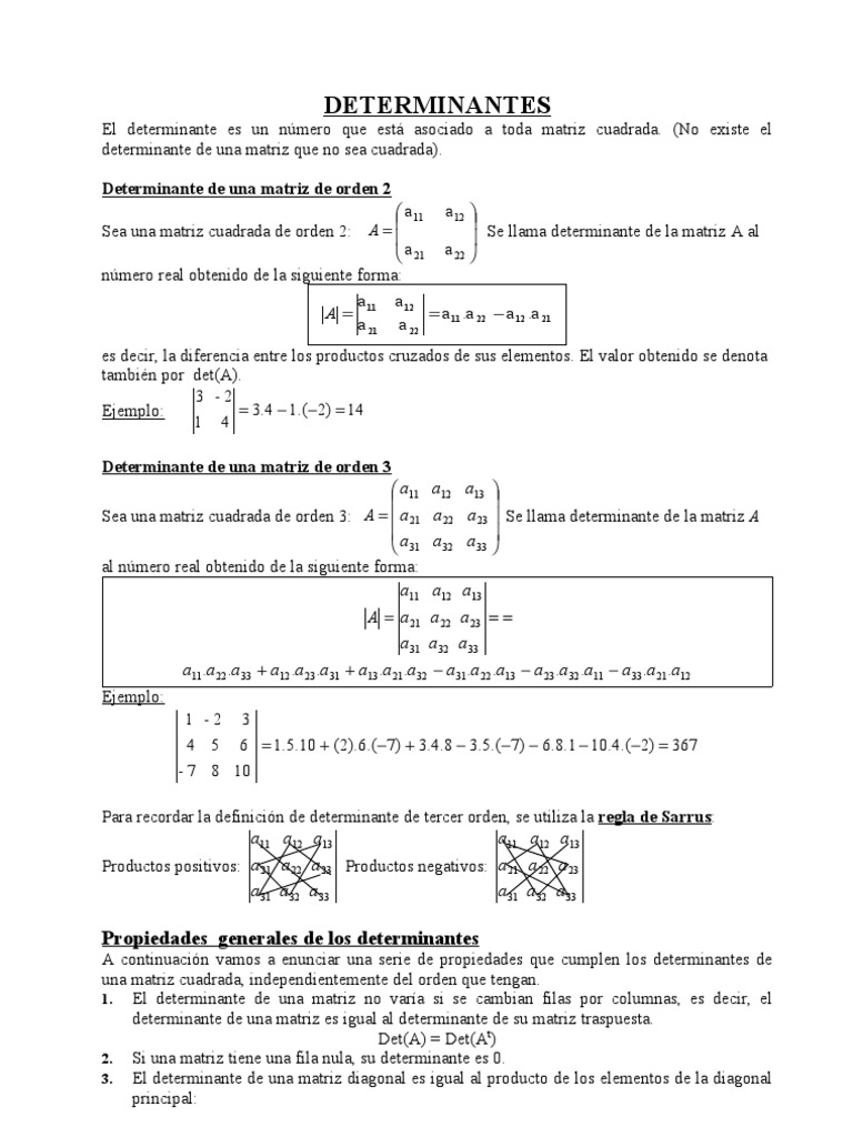 Definicion De Determinante De Una Matriz Ejemplos. Determinantes