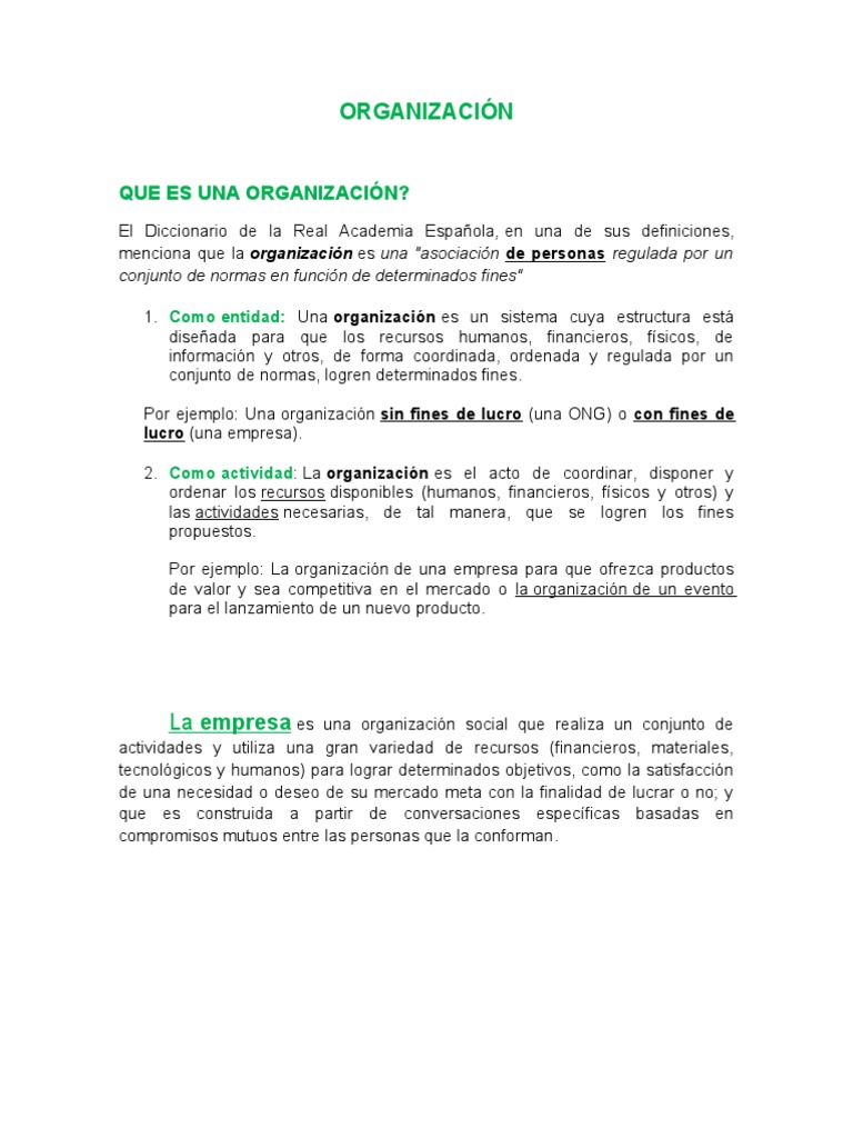 Conceptos De Organizacion Empresa Y Organigrama 1
