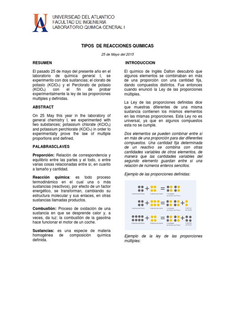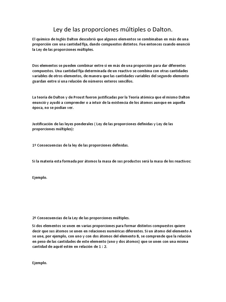 Ley De Las Proporciones Múltiples O De Dalton Química 2