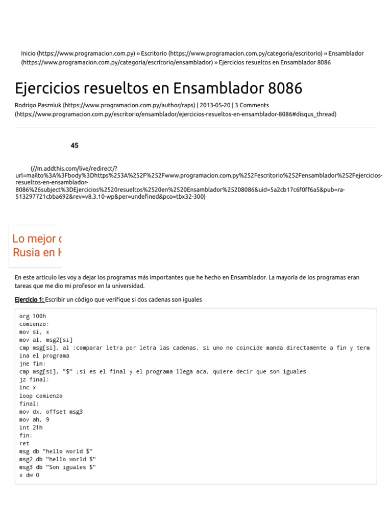 Ejemplos De Programas En Lenguaje Ensamblador 8086. Ejercicios Resueltos En Ensamblador 8086 Programaciónpdf