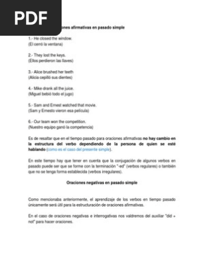 Ejemplos De Oraciones Afirmativas En Pasado Simple Verbo