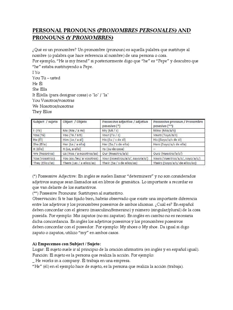 15 Pdf Possessive Adjectives Y Ejemplos Printable Hd Docx
