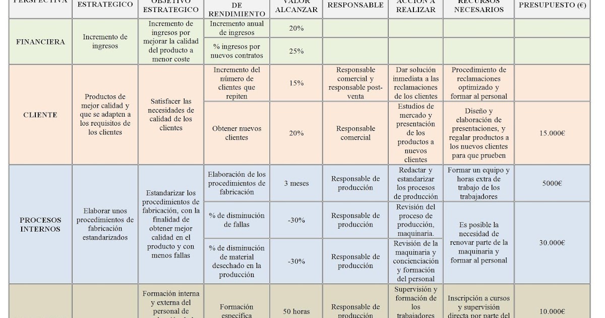 Ejemplo De Cuadro De Mando Integral De Una Empresa