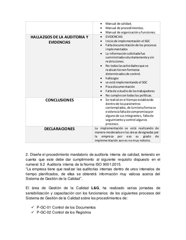 Ejemplo Informe Auditoria Interna Iso 9001 2015