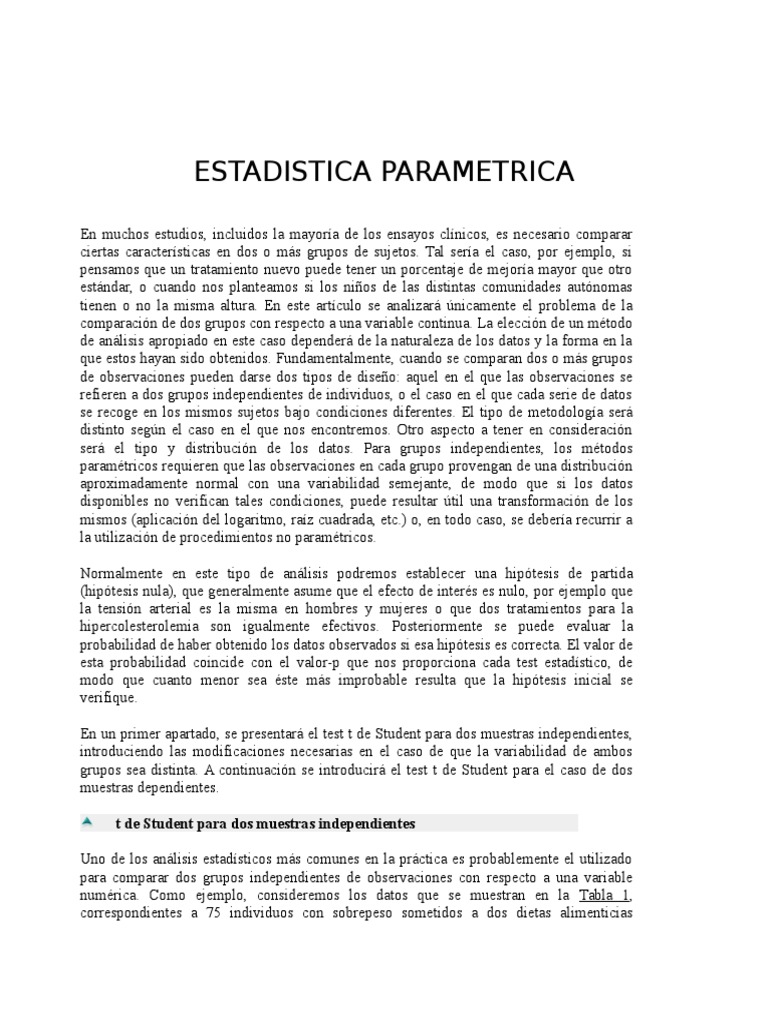 Métodos Paramétricos Para La Comparación De Dos Medias T De