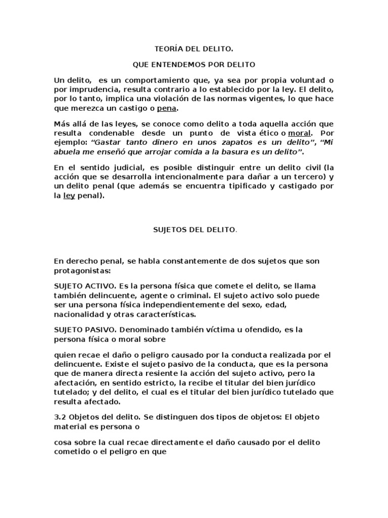 Ejemplos De Sujeto Activo Y Pasivo En Derecho Penal