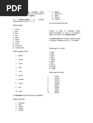 Ejemplos De Las Palabras Agudas Graves Y Esdrujulas. Ejemplos De Palabras Agudas Graves Y Esdrujulas Con Y Sin Tild