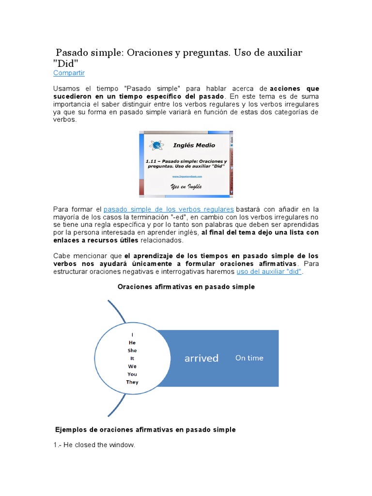 Ejemplos De Oraciones Del Verbo To Be En Pasado Simple. 111 Pasado Simple Oraciones Y Preguntas Uso De Auxiliar Did